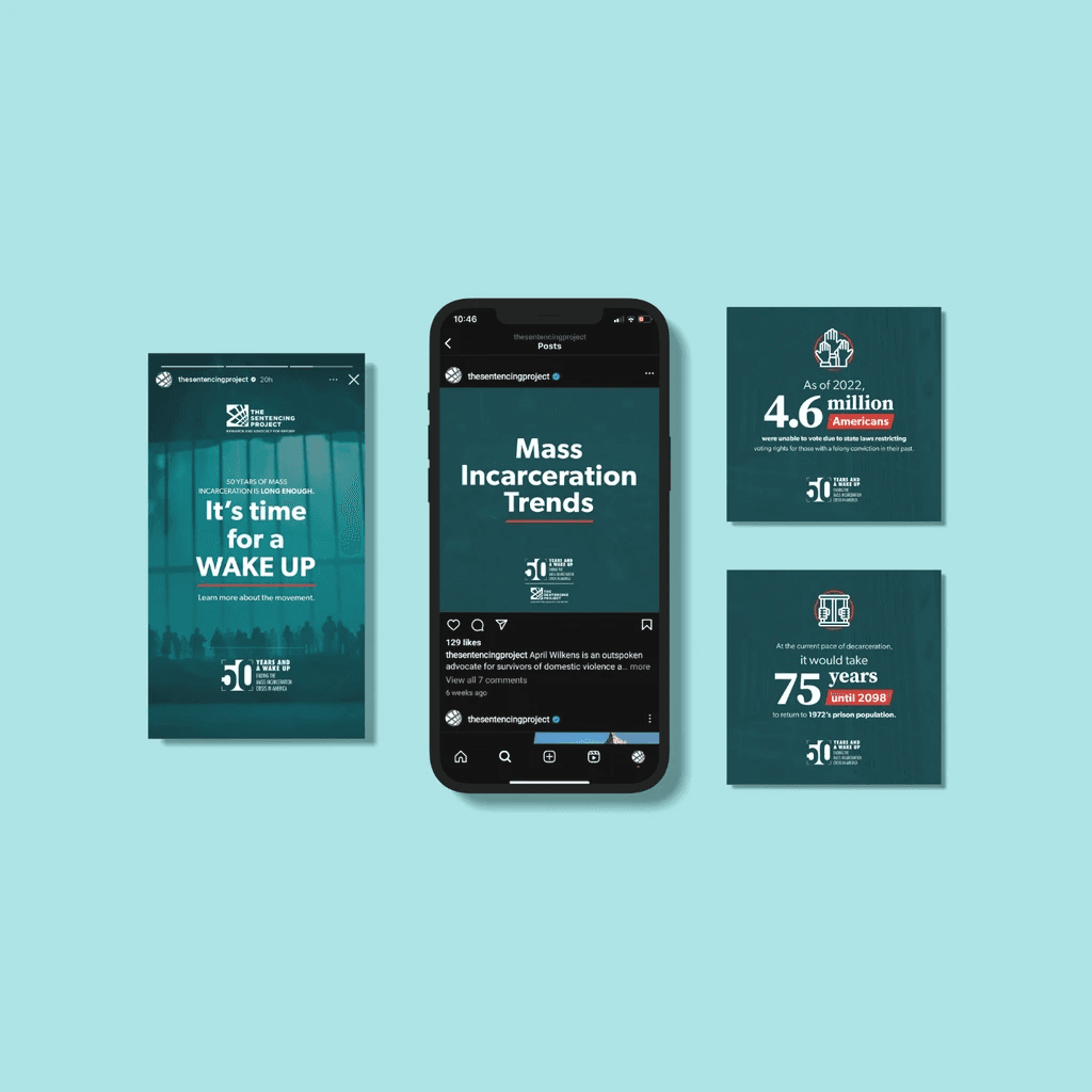 For over four years, we’ve collaborated with The Sentencing Project, including the “50 Years and a Wake-Up” campaign, translating complex and sensitive issues into clear, human-centered narratives.